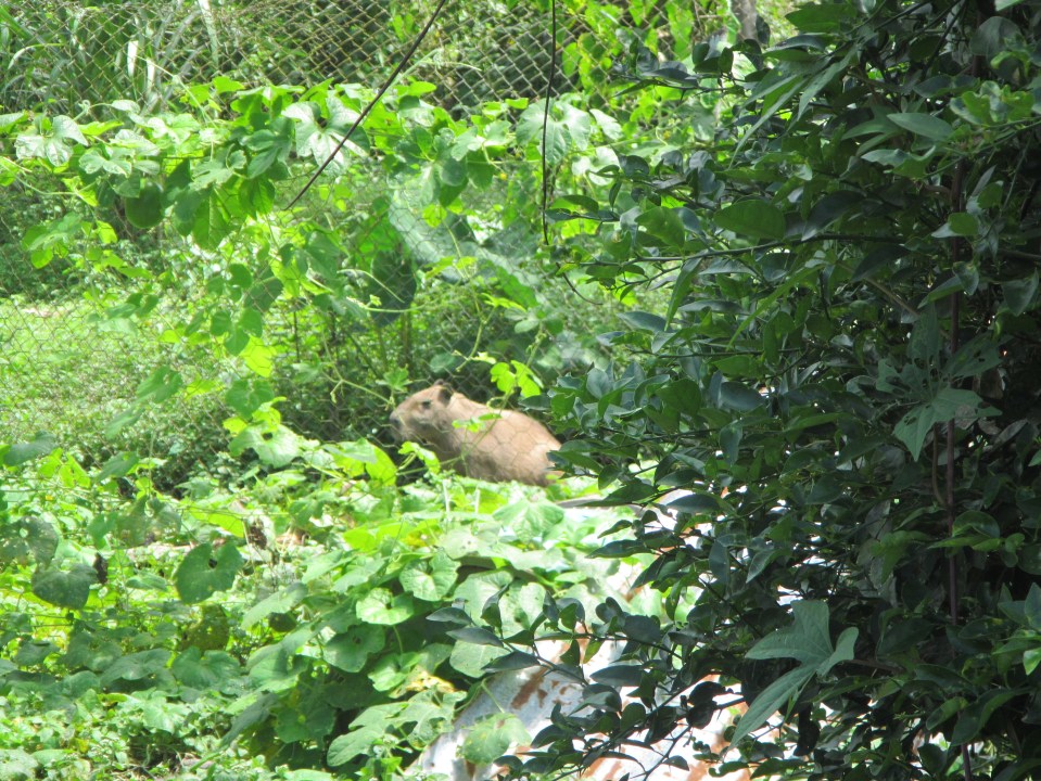 Luis, a Cofan elder, keeps animals such as this capybara near his home